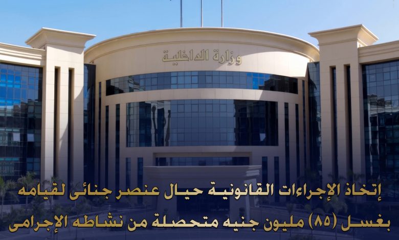 في إطار جهود مكافحة غسل الأموال وتتبع ثروات أصحاب الأنشطة الإجرامية، نجح قطاع مكافحة المخدرات والأسلحة والذخائر غير المرخصة بالتنسيق مع أجهزة الوزارة في اتخاذ الإجراءات القانونية ضد عنصر جنائي قام بغسل الأموال الناتجة عن نشاطه الإجرامي في الاتجار بالأسلحة النارية والذخائر غير المرخصة وترويجها.