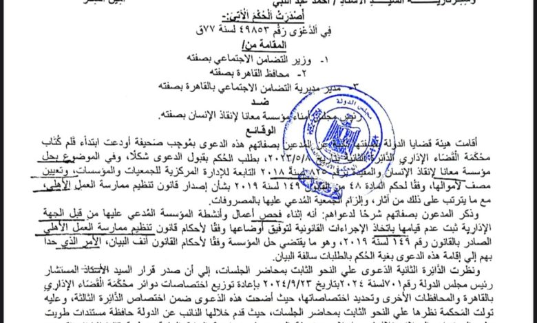 بالمستندات.. حكم قضائي يكشف أسباب غلق مؤسسة «معانا لإنقاذ إنسان»