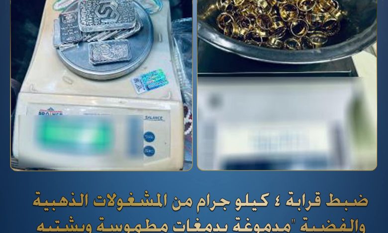في إطار جهودها المستمرة لمكافحة الغش التجاري وحماية المستهلكين، تمكنت الإدارة العامة لشرطة التموين والتجارة الداخلية بقطاع الأمن الاقتصادي من ضبط كمية كبيرة من المشغولات الذهبية والفضية تقدر بنحو 4 كيلو جرام، بعد ورود معلومات عن ترويجها داخل 6 محلات لتجارة المشغولات الذهبية بدائرة قسم شرطة الجمالية بالقاهرة.