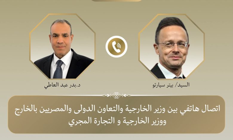 جرى اتصال هاتفي بين د. بدر عبد العاطي وزير الخارجية والتعاون الدولي وشؤون المصريين بالخارج، والسيد بيتر سيارتو وزير الخارجية والتجارة المجري، يوم الثلاثاء ٢٤ فبراير، وذلك لبحث سبل تعزيز العلاقات الثنائية بين البلدين وتبادل الرؤى إزاء عدد من القضايا الإقليمية والدولية ذات الاهتمام المشترك.