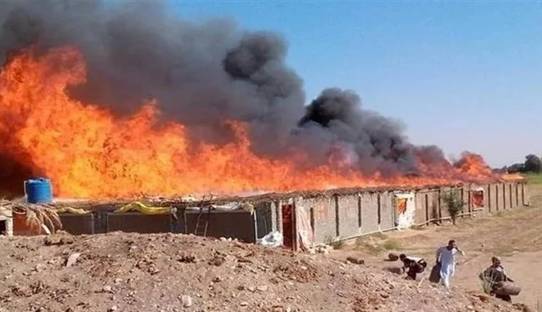 حريق هائل بمزرعة دواجن في الصف يلتهم 30 ألف كتكوت بسبب ماس كهربائي