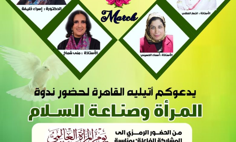 منى شماخ تشارك في ندوة “المرأة وصناعة السلام” بأتيليه القاهرة
