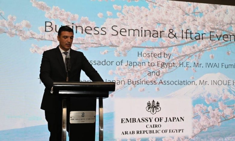 جاء ذلك في سياق كلمة الوزير التي ألقاها خلال مشاركته في الندوة التي نظمتها سفارة اليابان بالقاهرة تحت عنوان اتجاهات الاستثمار الياباني بالخارج وسبل تعزيز التعاون الصناعي والاقتصادي بين مصر واليابان، وذلك بحضور السفير/ فوميو ايواي سفير اليابان بالقاهرة، والسيد/ إينوي هيروكي رئيس جمعية الأعمال اليابانية.