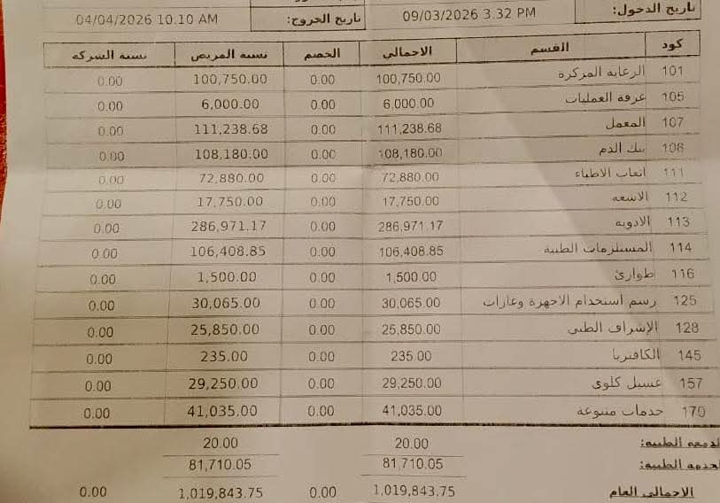 وعبر صفحتها الرسمية، أعربت “صابر” عن غضبها الشديد من تعنت إدارة المستشفى ورفضها السماح بدفن جثمان صديقها الراحل إلا بعد سداد كامل المبالغ المستحقة، والتي تجاوزت المليون جنيه (بحسب الفاتورة المرفقة)، واصفة الأسعار الواردة في بنود العلاج بأنها “غير منطقية” وتستدعي تساؤلات عاجلة.