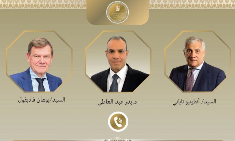 أجرى بدر عبد العاطي، وزير الخارجية، اتصالين هاتفيين مع كل من أنطونيو تاياني ويوهان فاديفول، لبحث مستجدات الأوضاع الإقليمية في أعقاب إعلان وقف إطلاق النار بين الولايات المتحدة وإيران، والمفاوضات المرتقبة في إسلام آباد.