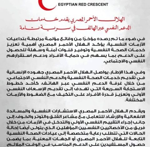 واختتم الهلال الأحمر المصري بيانه بالتأكيد على استمراره في أداء دوره الإنساني في دعم الصحة النفسية وتعزيز سلامة المجتمع.