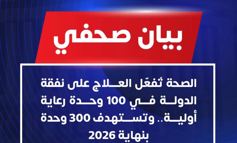 الصحة تُفعّل العلاج على نفقة الدولة في 100 وحدة رعاية أولية.. وتستهدف 300 وحدة بنهاية 2026