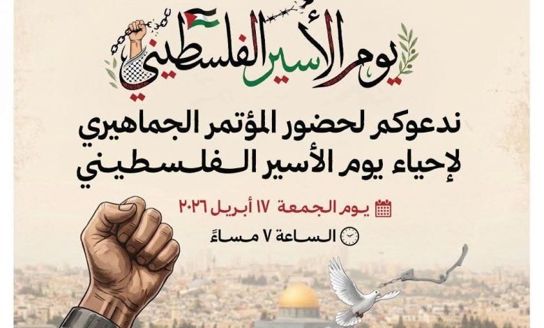 أعلن حزب الكرامة عن تنظيم مؤتمر جماهيري موسع، لإحياء ذكرى “يوم الأسير الفلسطيني”، وذلك في إطار التضامن المستمر مع القضية الفلسطينية ودعم صمود الأسرى داخل سجون الاحتلال الإسرائيلي.