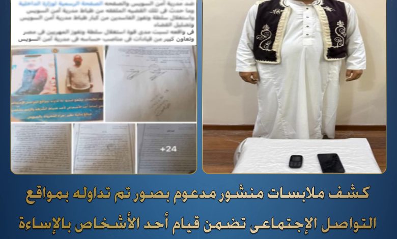 في إطار جهود وزارة الداخلية لكشف ملابسات ما يتم تداوله على مواقع التواصل الاجتماعي، رصدت الأجهزة الأمنية منشورًا مدعومًا بصور، تضمن ادعاءات من أحد الأشخاص بقيام عدد من ضباط الشرطة بمحافظة السويس بتلفيق قضايا ضده والإساءة إليه.