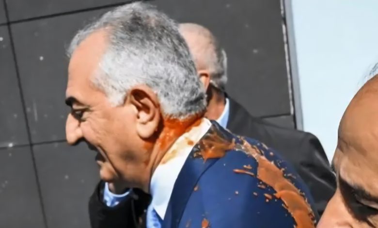تعرض رضا بهلوي، نجل شاه إيران السابق، لحادث رشّ بسائل أحمر اللون، الخميس، أثناء مغادرته أحد المباني في العاصمة الألمانية برلين، وذلك عقب انتهاء مؤتمر صحفي كان قد شارك فيه.