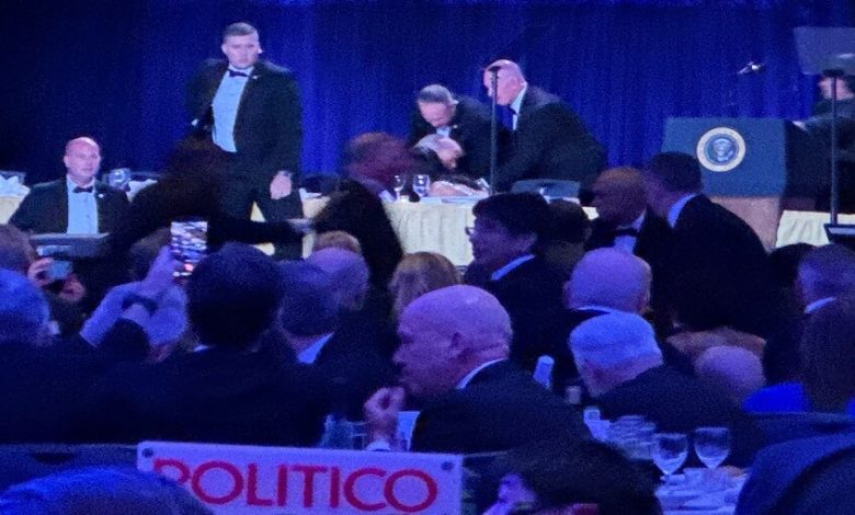 ووفقًا لما نقلته وسائل إعلام أمريكية، سارعت عناصر جهاز الخدمة السرية إلى إجلاء ترامب وفانس وعدد من كبار المسؤولين من القاعة إلى موقع آمن، وسط حالة من الارتباك والذعر بين الحاضرين.