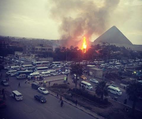 مخلفات نخل.. تفاصيل حريق أهرامات الجيزة
