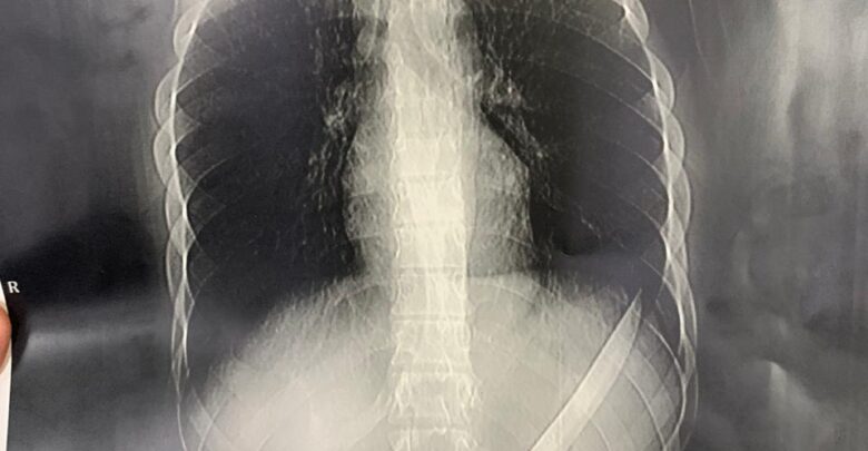 وأوضح أن المريض حضر لمستشفى المنصورة الدولي يعاني من آلام شديدة بالبطن وبعمل الأشعات والفحوصات تبين وجود جسم غريب.