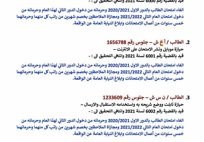 ونشر شوقي أرقام جلوس الطلاب الغشاشين وتفاصيل محضر الغش.