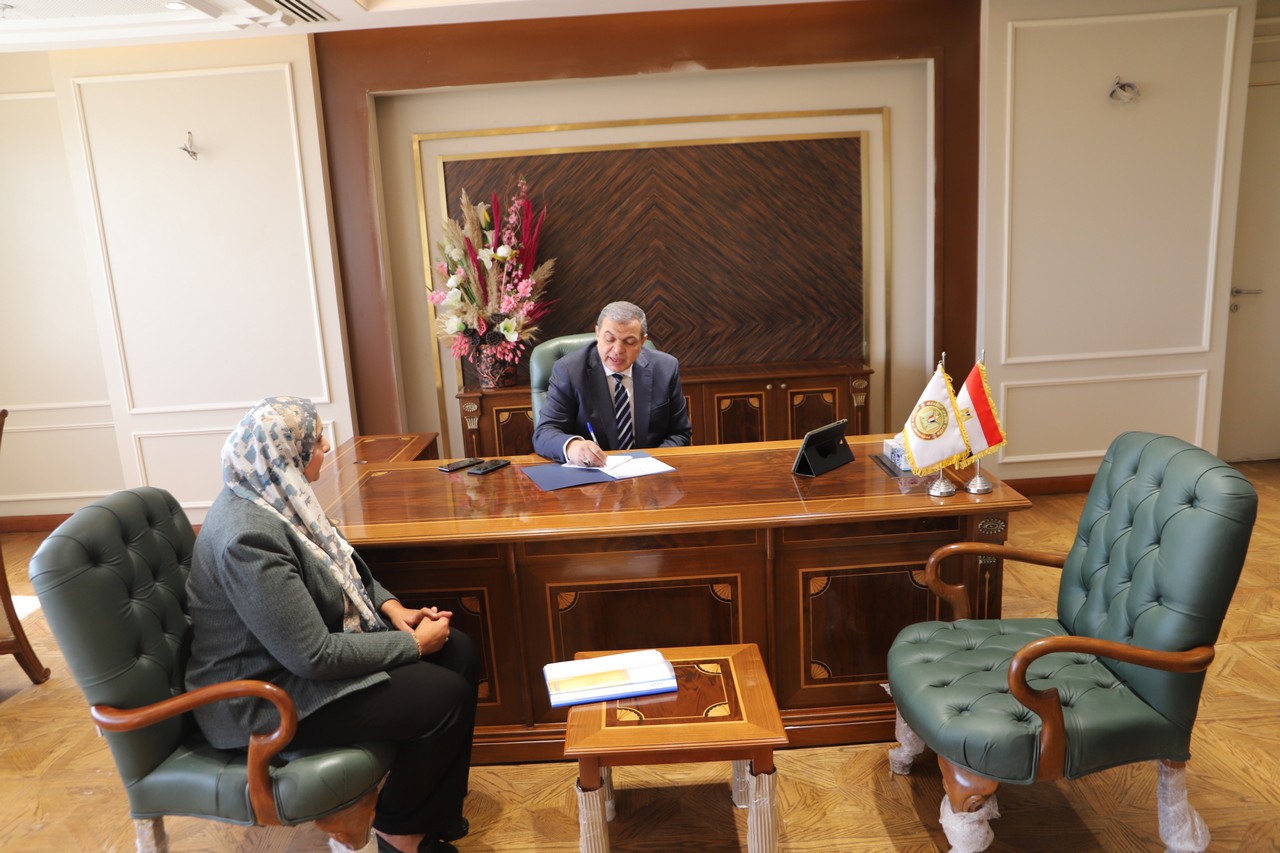 واستمع وزير القوي العاملة ، بمكتبه بمبنى الوزارة بمقرها الجديد بالعاصمة الإدارية إلى شرح حول الأعمال التي تم الانتهاء من تنفيذها بالمبني، من منال عبد العزيز وكيل الوزارة لشئون مكتب الوزير ، وكذلك شاهد ماكيت بأدوار وإدارات الوزارة بالكامل عند مرحلة إنتقال الإدارات بالموظفين علي دفعات متتابعة وفقًا للتخصصات وخطة الانتقال المعدة من قِبل الوزارة.
