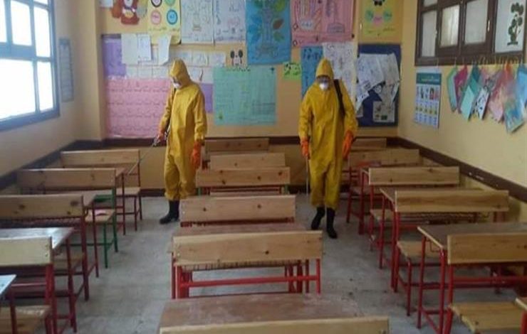 تعقيم الفصول لاستقبال الطلاب اليوم في أول أيام الفصل