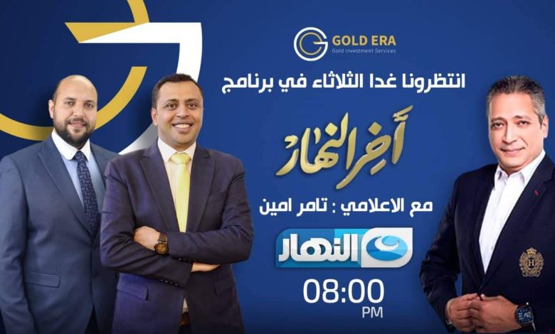 يحل الخبير الاقتصادي والمدير التنفيذي لشركة جـولد ايـرا الأستاذ جون لوكا، والمستشار العام لجـولد ايـرا الأستاذ أحمد فهيم ، غدا في برنامج آخر النهار مع الإعلامي تامر أمين علي قناة النهار