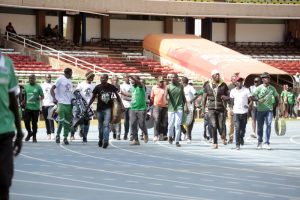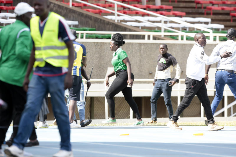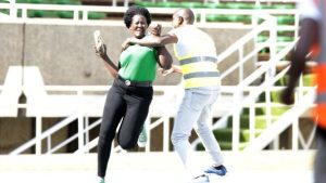 وتداول رواد السوشيال ميديا، صورا لزوجة صامويل أونيانجو، لاعب جورماهيا الكيني، التي كانت تتواجد بالمدرجات، قبل أن تقرر اقتحام أرض الملعب حاملة في يدها حجرا كبيرا، للانتقام من اللاعب الذي تسبب في إصابة زوجها.
