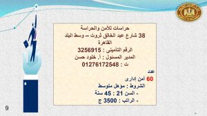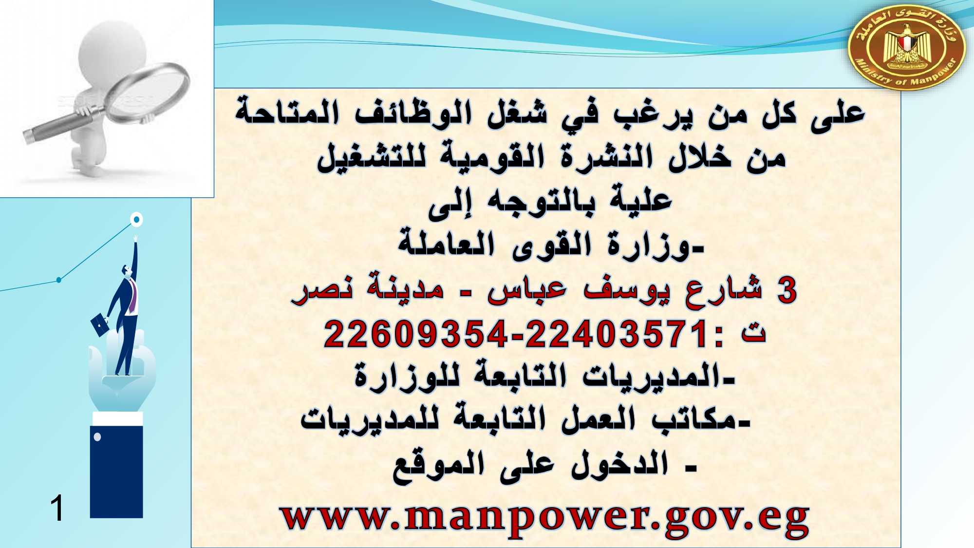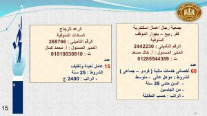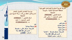 “النشرة القومية للتشغيل”، تحت مسمى “برنامج طالبى العمل” وسوف تقوم الإدارة المختصة بترشيح المتقدمين على الفرص وفقا لخبراتهم المسجلة بالبرنامج، بتوفير فرص مناسبة للمتقدم لاستغلال طاقات الشباب فيما يفيد المجتمع.