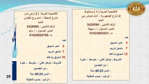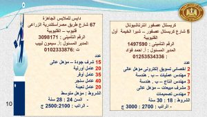 وتابع الوزير قائلا : إن فرص العمل المتوفرة بمحافظة القليوبية تتمثل فى 7 مهندس عمليات، و 2 أخصائى تسويق إلكتروني، و 5 مهندس إنتا، و 3 مشرف مبيعات ، و 7 مهندس تصميمات، و 20 مندوب مبيعات ، و 2 مهندس جودة ، و 20 مشرف جودة ، و20 عامل اورليه ، و 35 عامل أوفر ، و 40 عامل سنجر ، و 50 عامل حياكة ، و15 عامل قص ، و 20 عامل جودة ، و 30 عامل إنتاج ، و موظف مبيعات ، و 3 عامل نسيج ، و 10 عامل فحص منسوجات، و 50 عامل ماكينة ، و 50 عامل تعبئة ، و 20 عامل مغسلة ، و 10 عامل مساعد ، و 10 عاملة تشطيب ، و10 عامل صيانة .