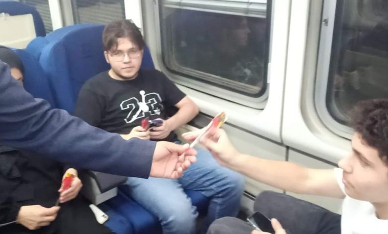 توزيع الورود على ركاب قطارات السكة الحديد