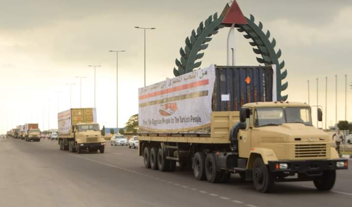 إستمراراً لدور مصر الفاعل تجاه الدول الشقيقة والصديقة وتنفيذاً لتوجيهات السيد الرئيس عبد الفتاح السيسى رئيس الجمهورية القائد الأعلى للقوات المسلحة بإرسال قافلة من المساعدات فى إطار الدعم والتضامن المصرى مع أبناء شعبى سوريا وتركيا فى أعقاب الزلزال المدمر بكلتا الدولتين .