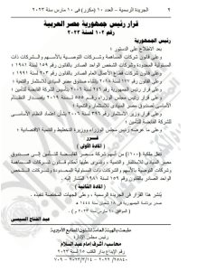 وتضمن نص قرار رئيس الجمهورية الآتي: بعد الاطلاع على الدستور؛ وعلى قانون شركات المساهمة وشركات التوصية بالأسهم والشركات ذات المسئولية المحدودة وشركات الشخص الواحد الصادر بالقانون رقم 159 لسنة 1981؛ وعلى قانون شركات قطاع الأعمال العام الصادر بالقانون رقم 203 لسنة 1991؛ وعلى القانون رقم 177 لسنة 2018 بإنشاء صندوق مصر السيادي للاستثمار والتنمية؛ وعلى قرار رئيس الجمهورية رقم 246 لسنة 2006 بتأسيس الشركة القابضة للتأمين؛ وعلى قرار رئيس مجلس الوزراء رقم 555 لسنة 2019 بإصدار النظام الأساسي لصندوق مصر السيادي للاستثمار والتنمية.
